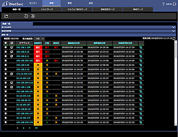 「機器一覧」、「C&Cサーバ」、「マルウェア配布サーバ」、「情報窃取サーバ」、「脅威サーバ」