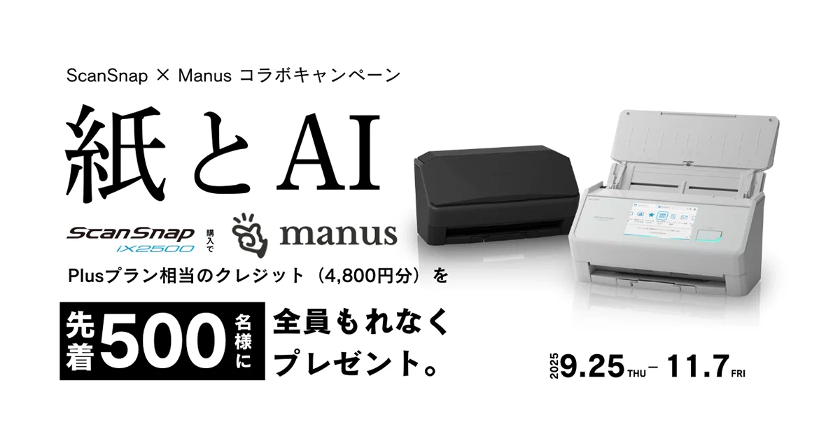 紙の情報をAIで活用!ScanSnapとAIエージェント「Manus」がコラボキャンペーンを開催