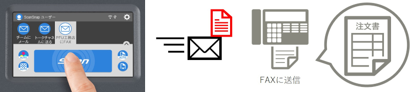 まだまだFAXが活用されている特定の仕入れ業者への発注業務などでも、業務フローを大きく変えることなくScanSnapだけでFAXを送ることが可能です。