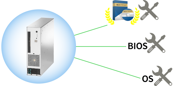 お客様のご要望に応じて、BIOS、OS、ソフトウェアのカスタマイズに対応いたします(有償サービス)。お客様アプリケーションやお客様指定ソフトウェアを組み込んだOSインストールにも対応いたします。