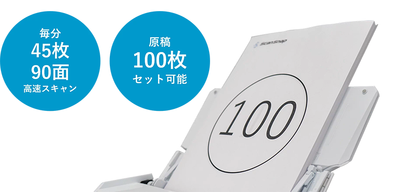 毎分45枚の高速スキャン(A4カラー、両面、300dpi)