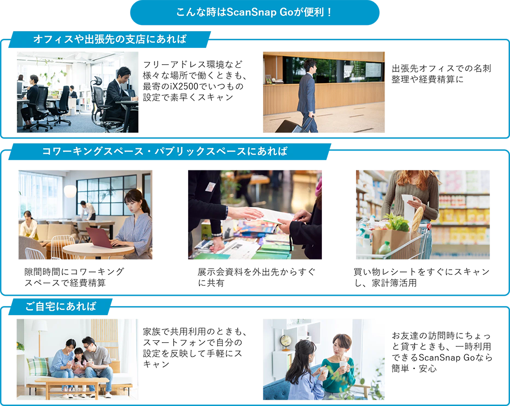 また、「ScanSnap Go」機能を活かし、様々な場所で手軽にiX2500が使える「ScanSnap Spot」を展開予定です。