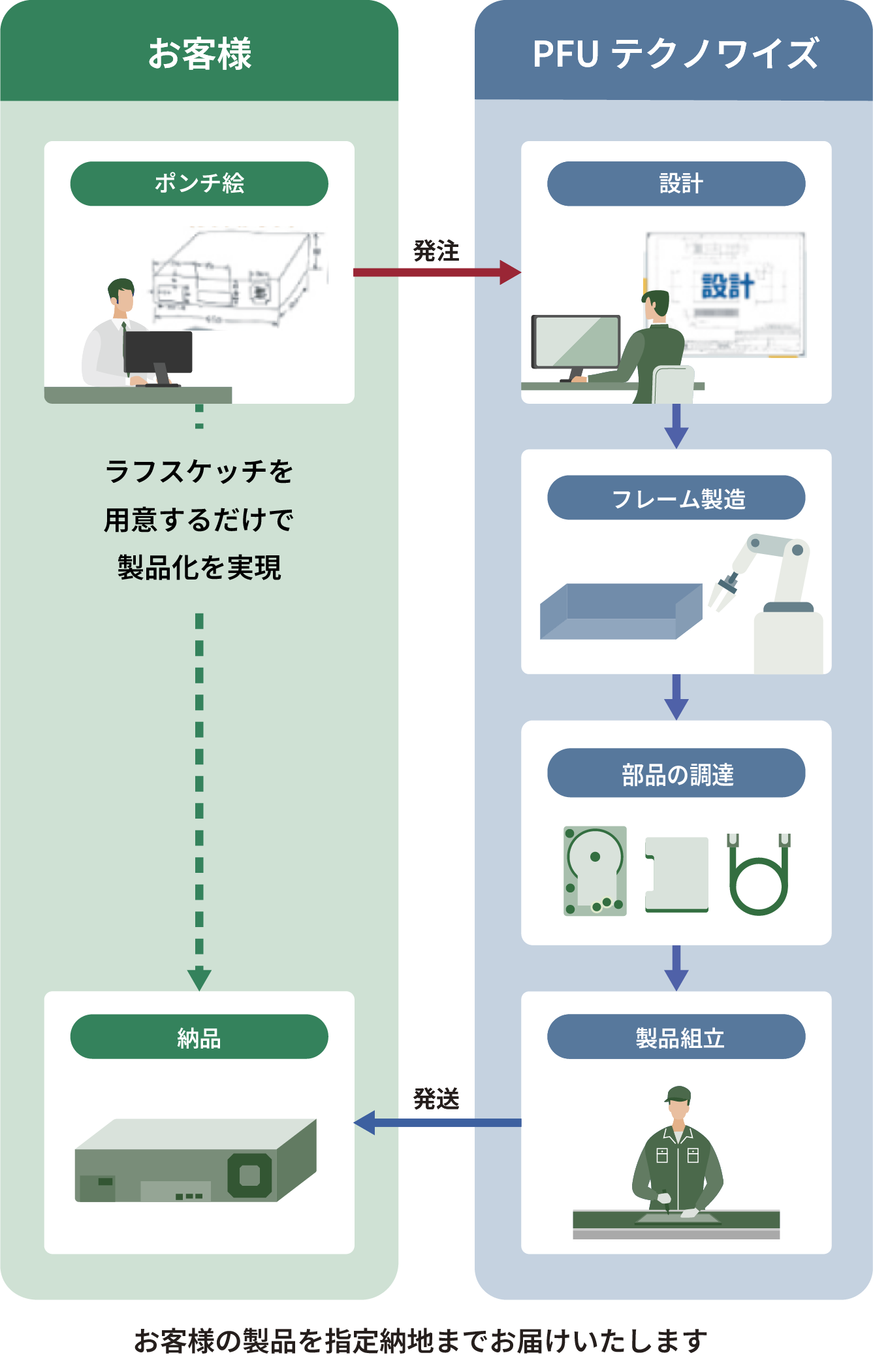 お客様の「ものづくり」を設計から、梱包・出荷までワンストップサービスで対応します。