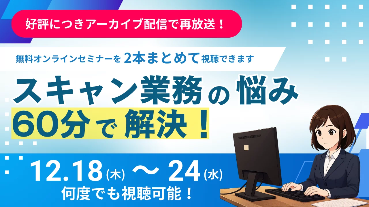 「スキャナーを活用した業務効率化のヒント」から「お客様のニーズに合ったスキャナー選び」まで、すぐに役立つポイントをお伝えいたします。