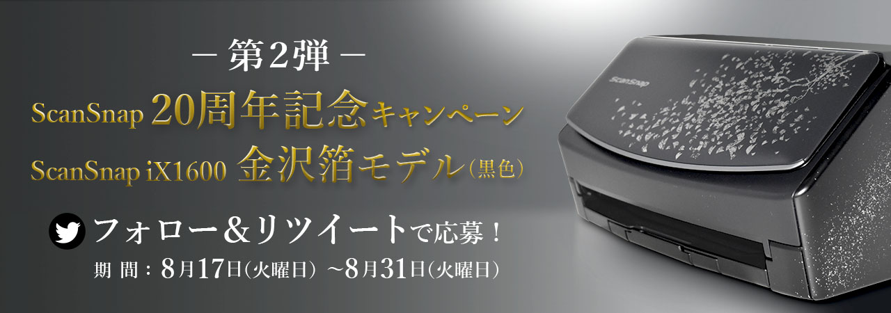 - ScanSnap20周年記念!Twitterで誰でも応募!ScanSnap iX1600 金沢箔モデルが当たる!