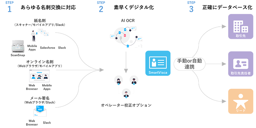 SmartViscaは、Salesforceの効果を最大化する名刺管理サービスです。