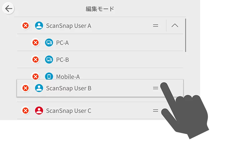 2.タッチパネルの使い勝手を向上!プロファイルの並び替えや、モバイル版ScanSnap Home利用時もタッチパネルからの設定変更に対応